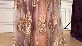 Black-haired teen babe getting fully revealed when sharking fella grabs her skirt