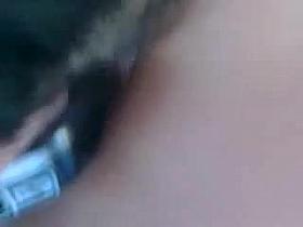 Spy cam downblouse video of a skinny Asian in a black & white dress