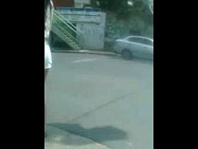 Public upskirt scene with blonde girl in sexy stockings
