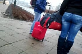 Voyeur walked behind her and he had the very same ideas as we are getting while watching her hips sway with every move she makes. Those washed out jeans pants are a slim fit on her girly butt and she sure looked desirable in them, making us all want to pinch her as she approaches.