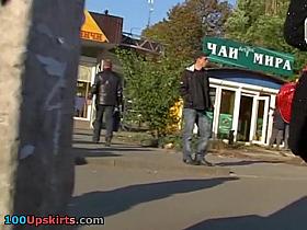 Nylon tights sparkling upskirt