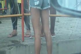 Street candid vid of a hot teen brunette