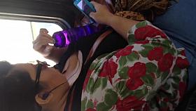 Asian candid down blouse video with brunette babe
