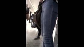 Nice ass blonde in tight jeans