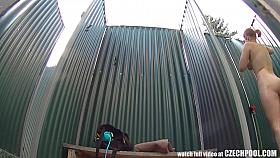 Poolside pulling from cfnm sluts on naked guys cock