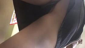 Upskirt voyeur in a supermarket peeking under woman's skirts