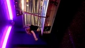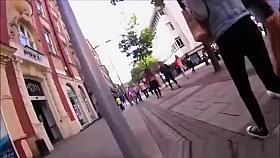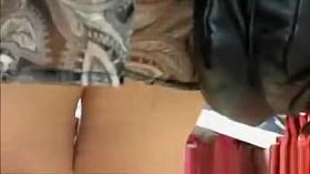 A chubby girl shows her pierced pussy in this upskirt voyeur video