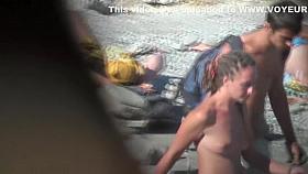 Naughty amateur nudists having sex on the voyeur beach