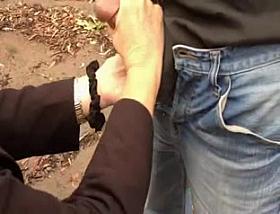 Attractive oriental schoolgirl gets interrupted on the street during sharking