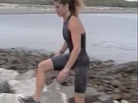Cute Asian gymnast gets her costume off in the change room