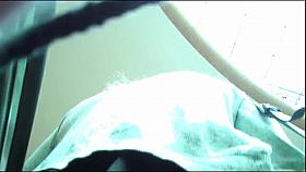 A beauty in red upskirted at escalator, wearing nice satin panties.