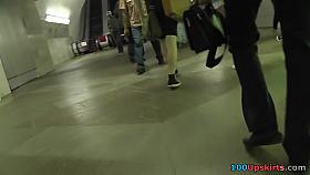 Amazing upskirt tease with skinny chick in mini skirt