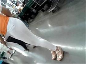 sensible woman upskirt white pants proper firm buttocks and ass