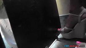 Pleasant upskirt porno by amateur dark-haired sweetie