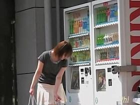 Sharking of a gorgeous Japanese woman sitting on stairs