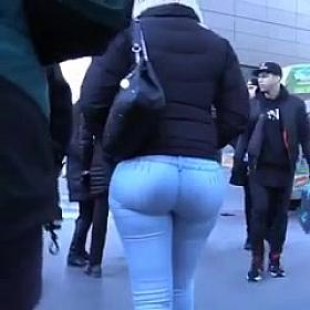 Candid upskirt vid with bubble-ass gal in a-line skirt
