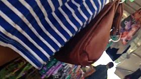 An upskirt view of a gorgeous brunette in a sexy mini skirt