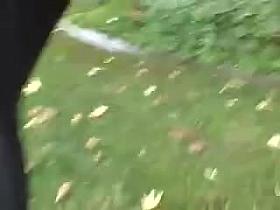 Bare ass babe caned in public bench