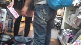 hottie on crutches followed by an up skirt voyeur