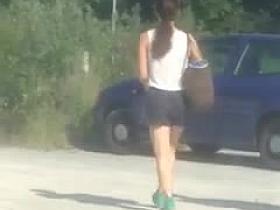 Charming girl caught during park peepee