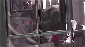 Naked brunette in crowded public bus