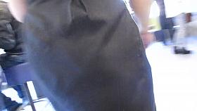 Woman in black stockings and short skirt upskirt