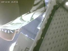 Chubby mature patient reveals her saggy breasts to a surveillance cam