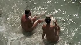 Perky brown-haired angelic sweetie loses her top during cool sharking scene
