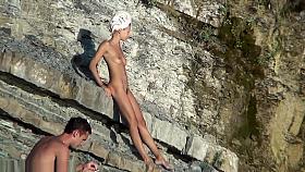 Nudist wife wandering on the beach