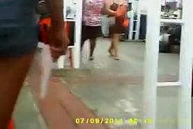 Woman sits to demonstrate product in shop, sneaky phone captures the view