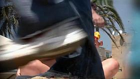 Glamorous brunette hair in street upskirt clip