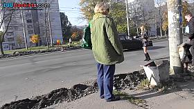 Mature blonde peeing abandoned place