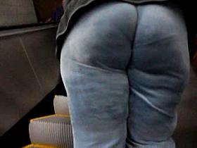 Attractive asian redhead gets her cleavage filmed by a voyeur