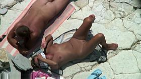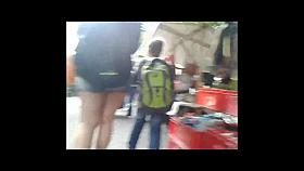 Blonde girl with sexy ass filmed by pervy guy in outdoor