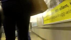 Voyeur nice ass in tight shiny jeans
