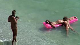 Sweet bimbo sunbathes with her shaved pussy lips out in the open