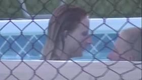 Voyeur. Guy wanking and fuck redhead girl on a public beach