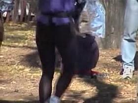 Street candid hot red head in tight pants and n ass out of this world