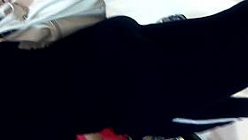 Slim legged girl in the Japanese sharking action