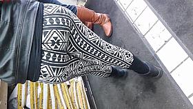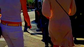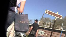 Voyeur was waiting and preying on the right moment and a dash of wind helped him to finally take a peek under her cute short skirt and to see her sweet round buttock. She was fully unaware that right behind her back there is a hot show going on for a voyeur.