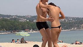 Upskirt voyeur videos of a hottie in a blue one piece in the park