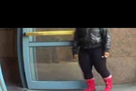 Ebony Beauty and Fly in Public Restroom - two cameras