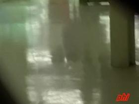 Hot brunette w/ a nice ass in a voyur porno pacing in a shopping mall