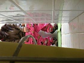 Two Jap schoolgirls fucked in voyeur Japanese sex video