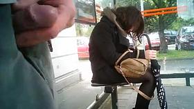Mature exhibitionist flashing outdoors