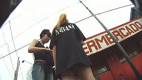 Woman has her ass upskrted in the street