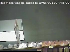 Supermarket worker doing her scene without noticing a costumer was watching and recording her ass in tight pants.