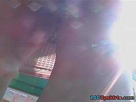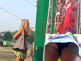 Marvelous bimbo has the perfectly shaped body so this babe dares wearing such a revealing and short suit that it easily allows our cameraman admire her turning on up petticoat view.