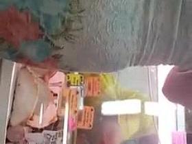 Charming upskirt gal filmed in a shop