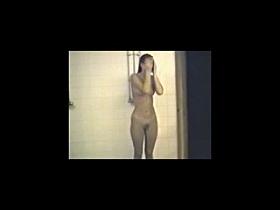 Spy camera in locker room catches women talking and dressing their bikinis and swimsuit.